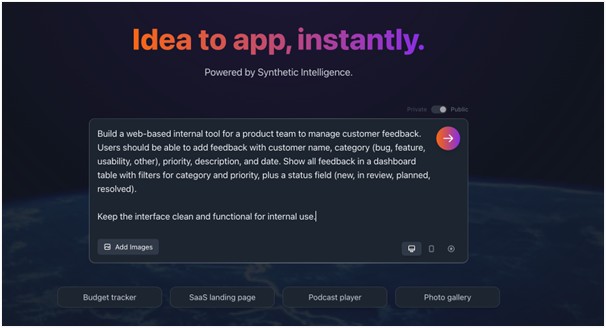 Famous.ai is an AI-driven app creation platform that turns natural language prompts into fully functional software. From a single description, the system generates a complete application, including a frontend interface, backend logic, data handling, and deployment-ready structure.