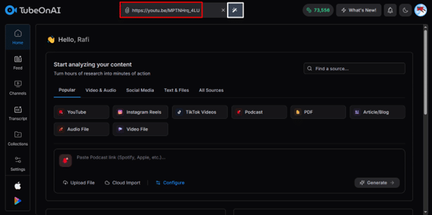 Step 2: Paste the Link in TubeOnAI