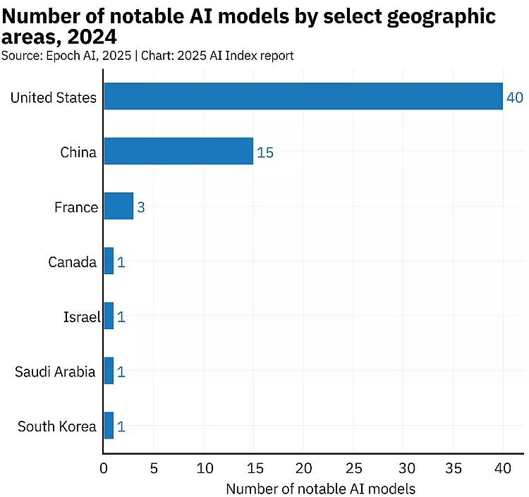 The United States still tops the global AI race, but the margin is narrowing. China has reached near-parity with American models on key performance benchmarks, while the UK, India, Singapore, and Gulf states are spending billions to close the gap.