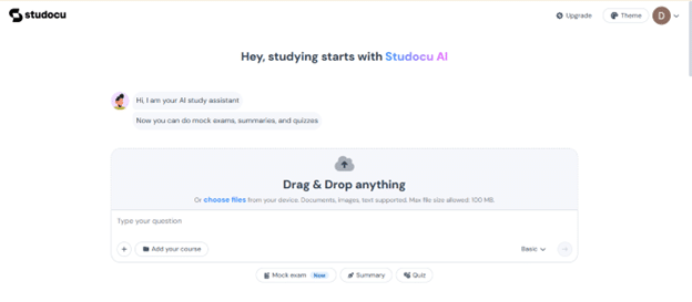 Studocu takes a different approach; its AI is built around study materials, not around an empty box. That design choice matters because students usually need help in the middle of reading, reviewing, or preparing for an exam, not in a separate workflow.