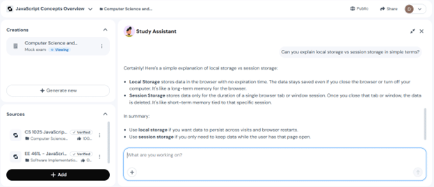 • Course-linked context makes answers more relevant and practical.